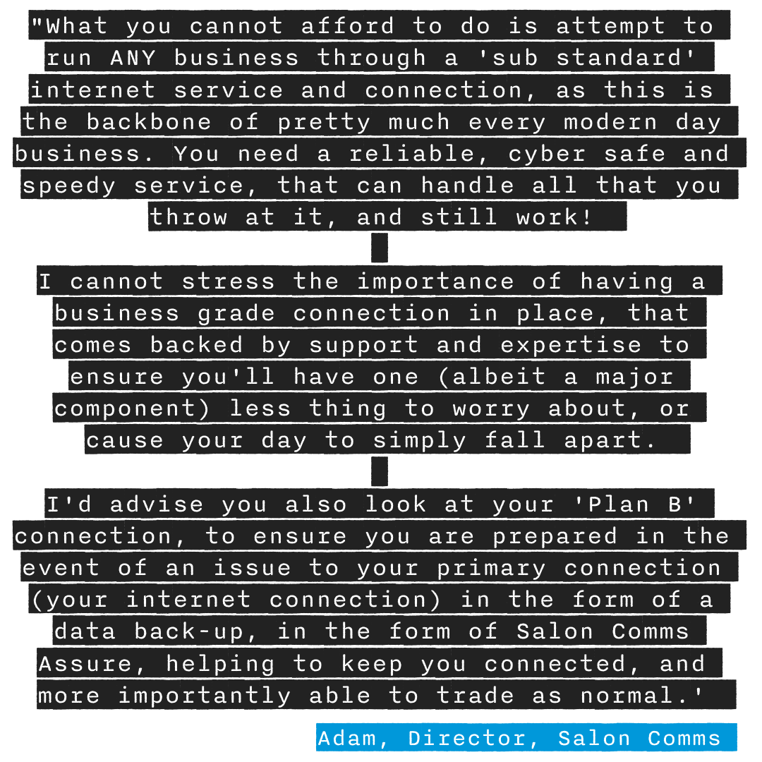 We're nationwide hair, beauty and wellness business communication specialists (we understand and can advise on your businesses technical & connectivity requirements, to ensure a smooth day to day running)